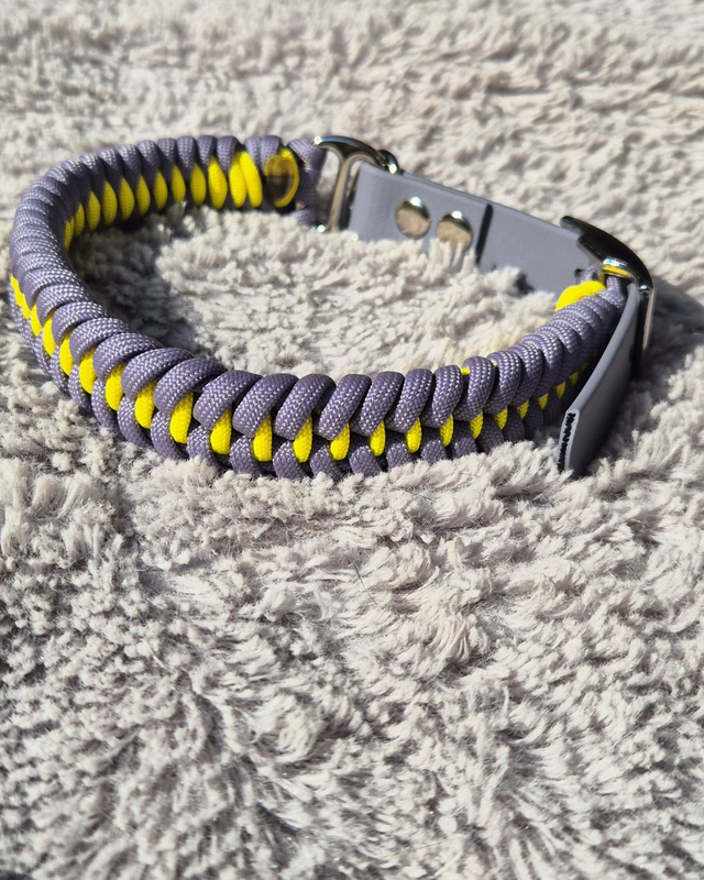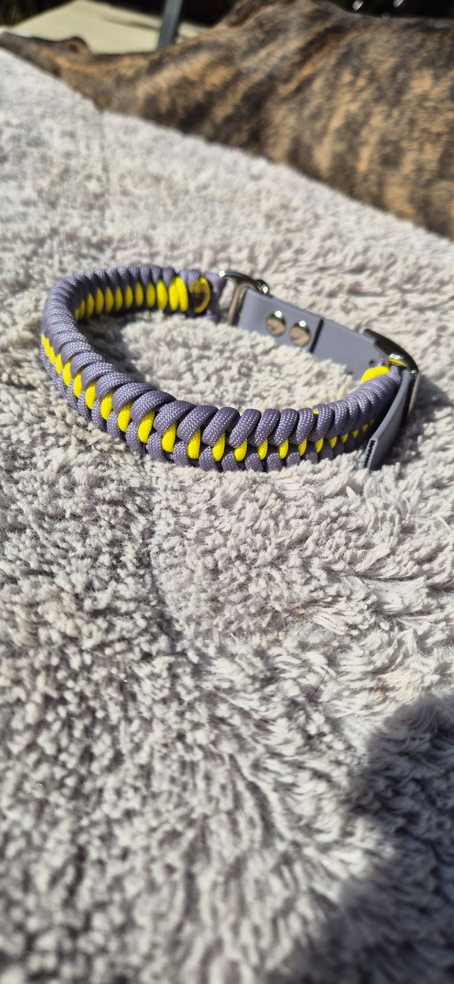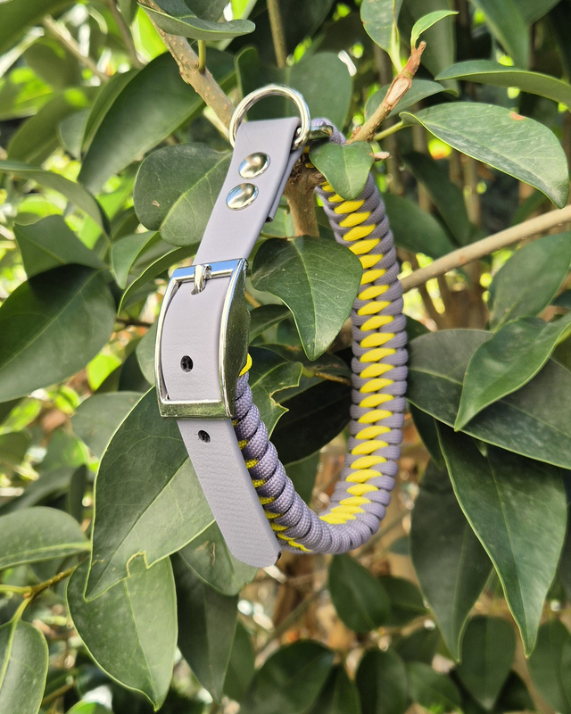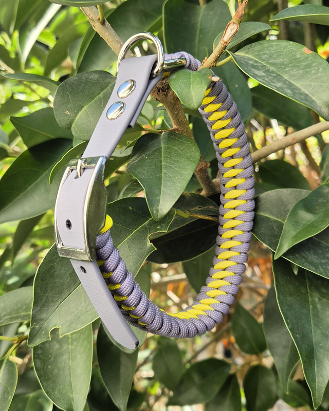 🎨 Ce collier tressé à la main associe la douceur du Gris Smoke à l'éclat du Canary jaune.