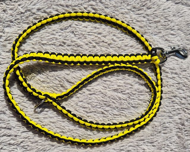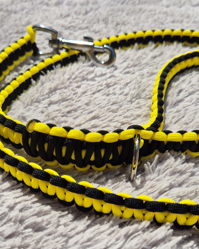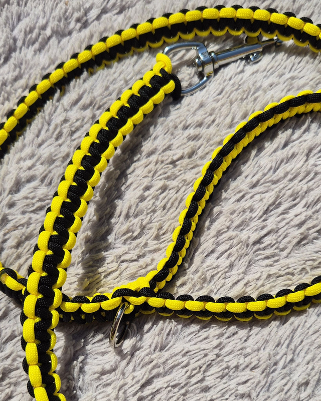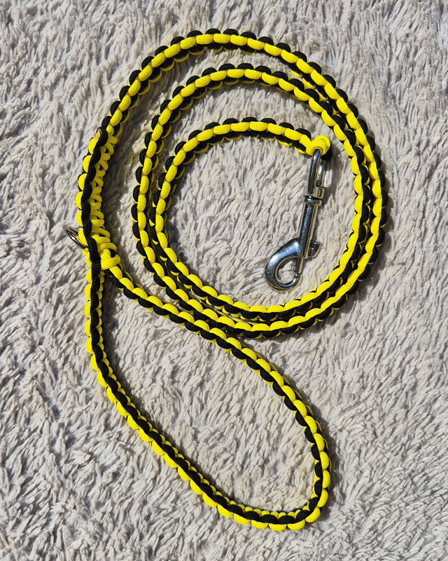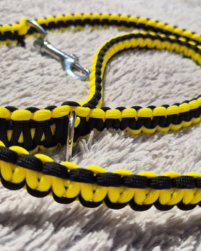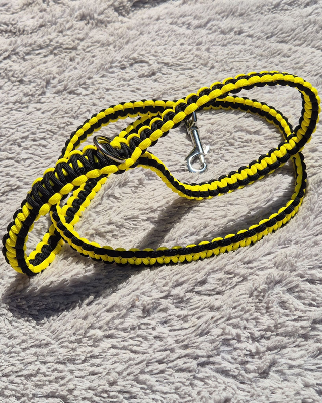 🎨 Entièrement tressée à la main avec de la paracorde 550 type III, cette laisse de 1m20 allie durabilité, confort et design unique car elle est personnalisable aux couleurs de votre choix afin de l'associée au collier de votre compagnon à 4 pattes.